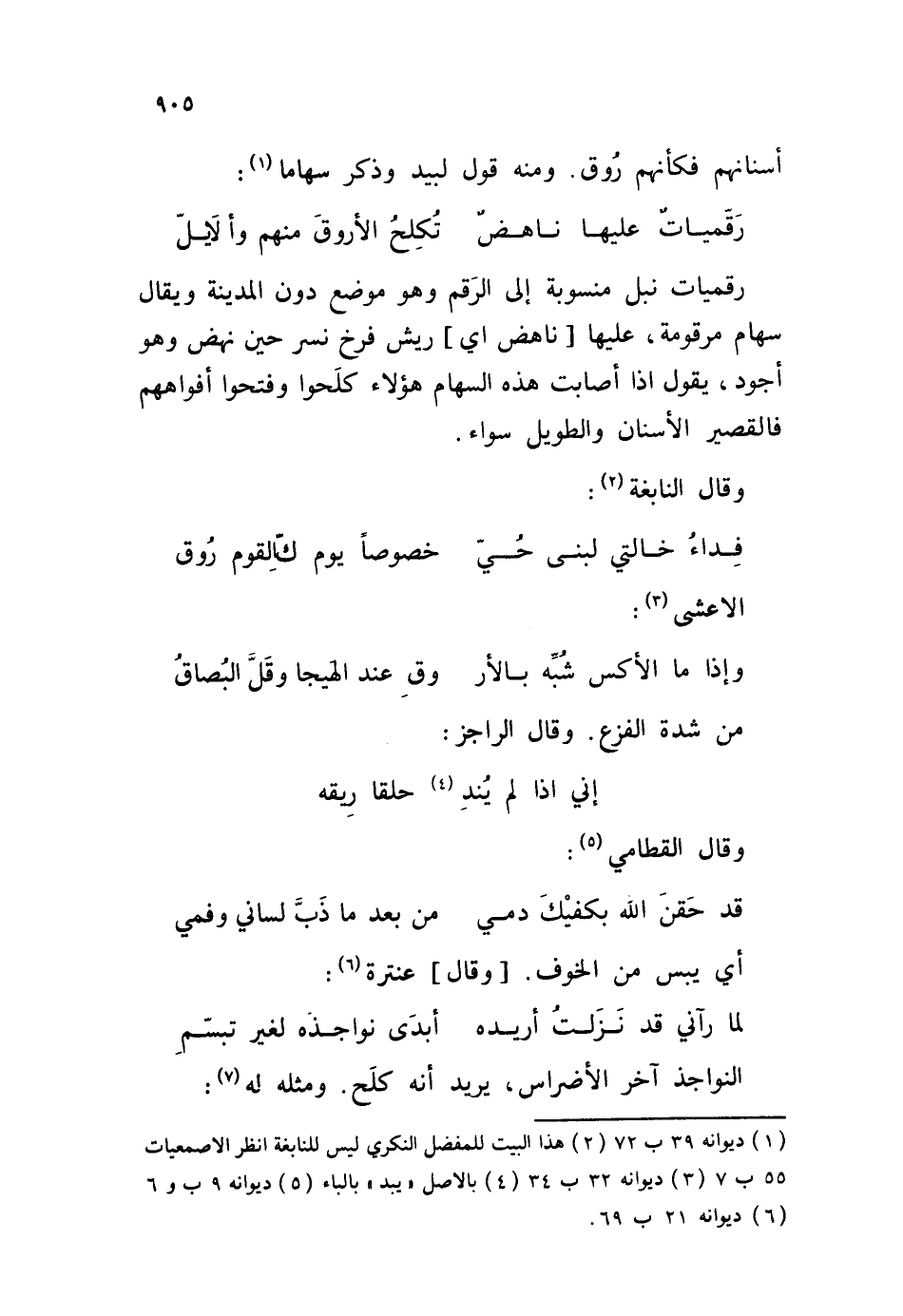 رقميات نبل منسوبة إلى الرَقم وهو موضع دون المدينة ويقال سهام مرقومة، عليها ناهض أي ريش فرخ نسر حين نهض وهِو أجود، يقول إذا أصابت هذه السهام هؤلاء كلَحوا وفتحوا أفواههم فالقصير الأسنان والطويل سواء. وقال النابغة: