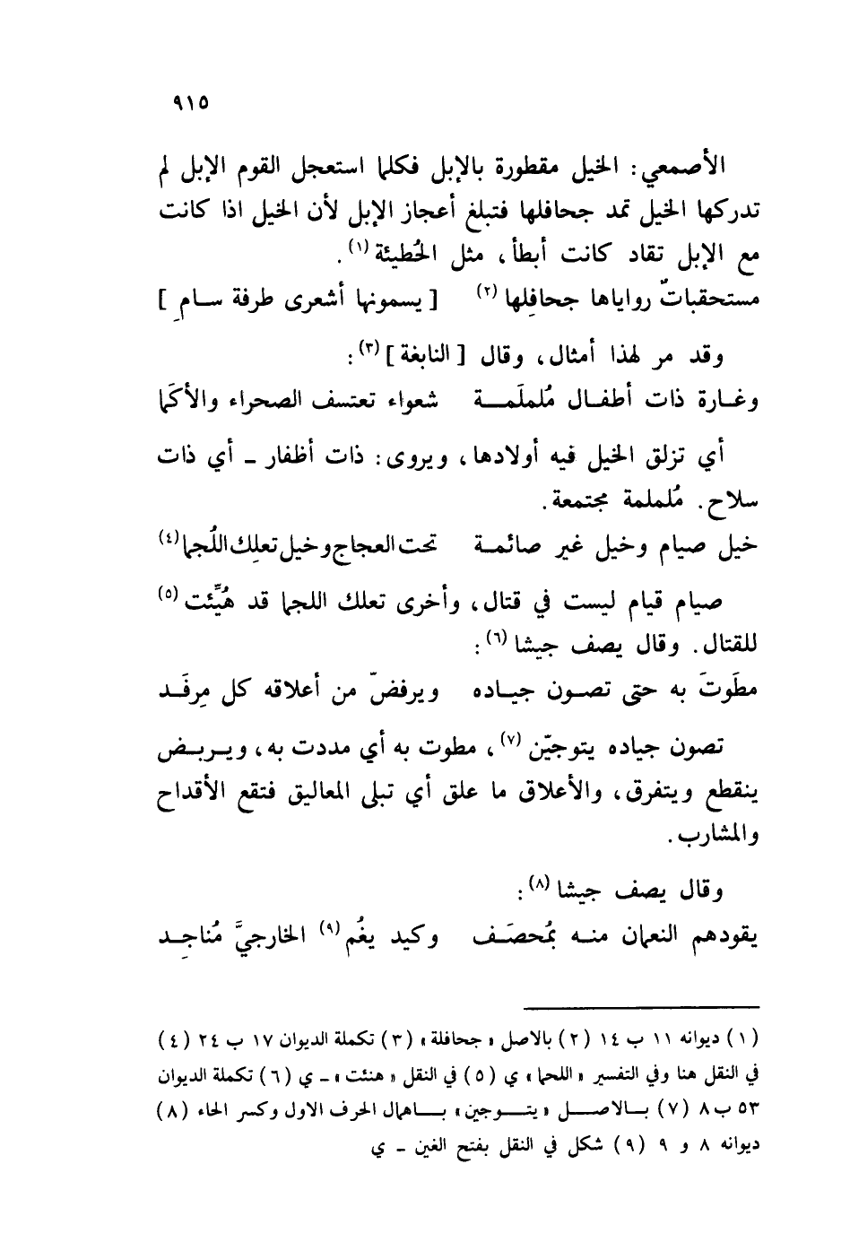 الأصمعي: الخيل مقطورة بالإبل فكلما استعجل القوم الإبل لم دركها الخيل تمد جحافلها فتبلغ أعجاز الإبل لأن الخيل إذا كانت مع الإبل تقاد كانت أبطأ، مثل الحُطيئة.