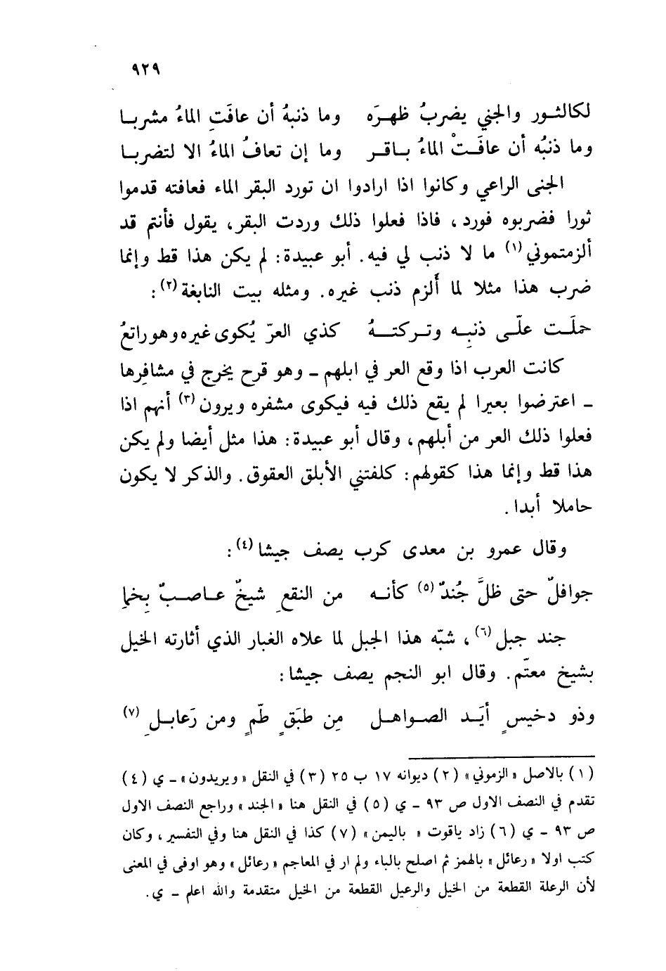 الجنى الراعي وكانوا إذا أرادوا أن تورد البقر الماء فعافته قدموا فضربوه فورد، فإذا فعلوا ذلك وردت البقر، يقول فأنتم قد ألزمتموني ما لا ذنب لي فيه. أبو عبيدة: لم يكن هذا قط وإنما ضرب هذا مثلا لما ألزم ذنب غيره. ومثله بيت النابغة: