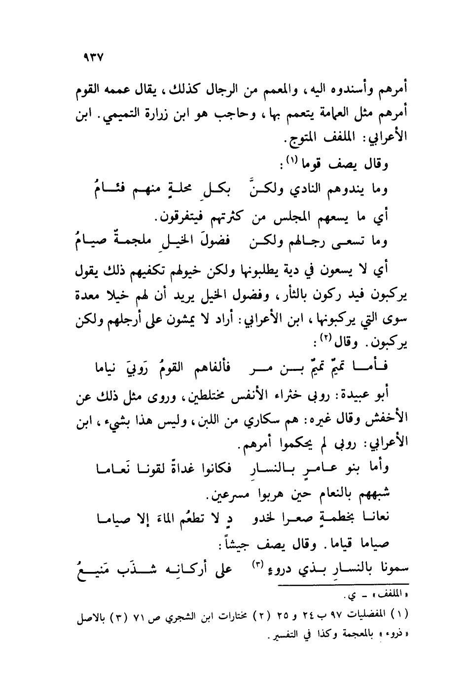 وأما بنو عامرٍ بالنسارِ ... فكانوا غداةً لقونا نَعاما