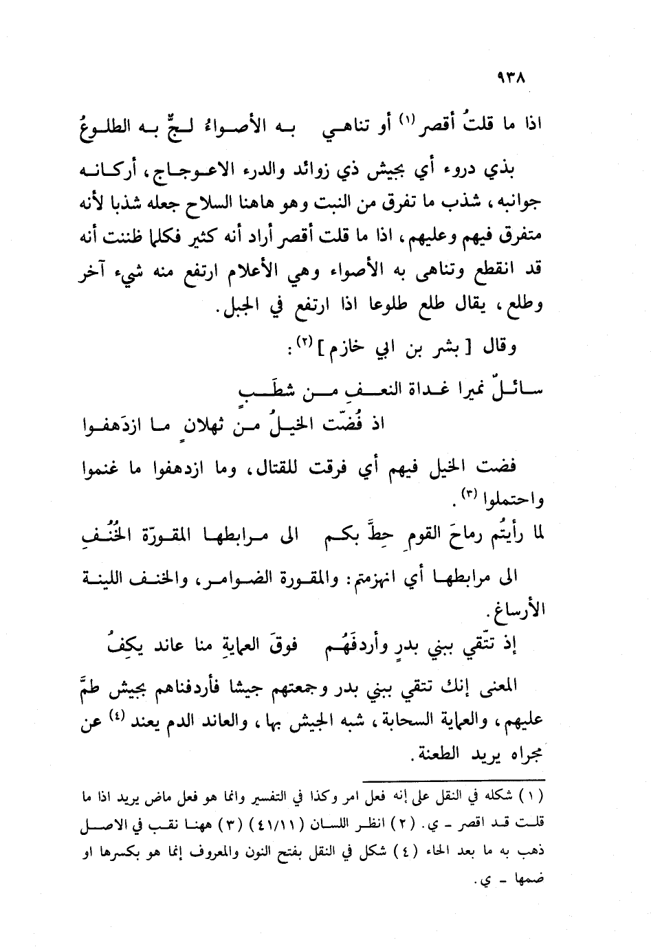 بذي دروء أي بجيش ذي فوائد والدرء الاعوجاج، أركانه جوانبه، شذب ما تفرق من النبت وهو هاهنا السلاح جعله شذبا لأنه متفرق فيهم وعليهم، إذا ما قلت أقصر أراد أنه كثير فكِلما ظننت أنه قد انقطع وتناهى به الأصواء وهي الأعلام ارتفع منه شيء آخر وطلع، يقال طلع طلوعا إذا ارتفع في الجبل. وقال بشر بن أبي خازم: