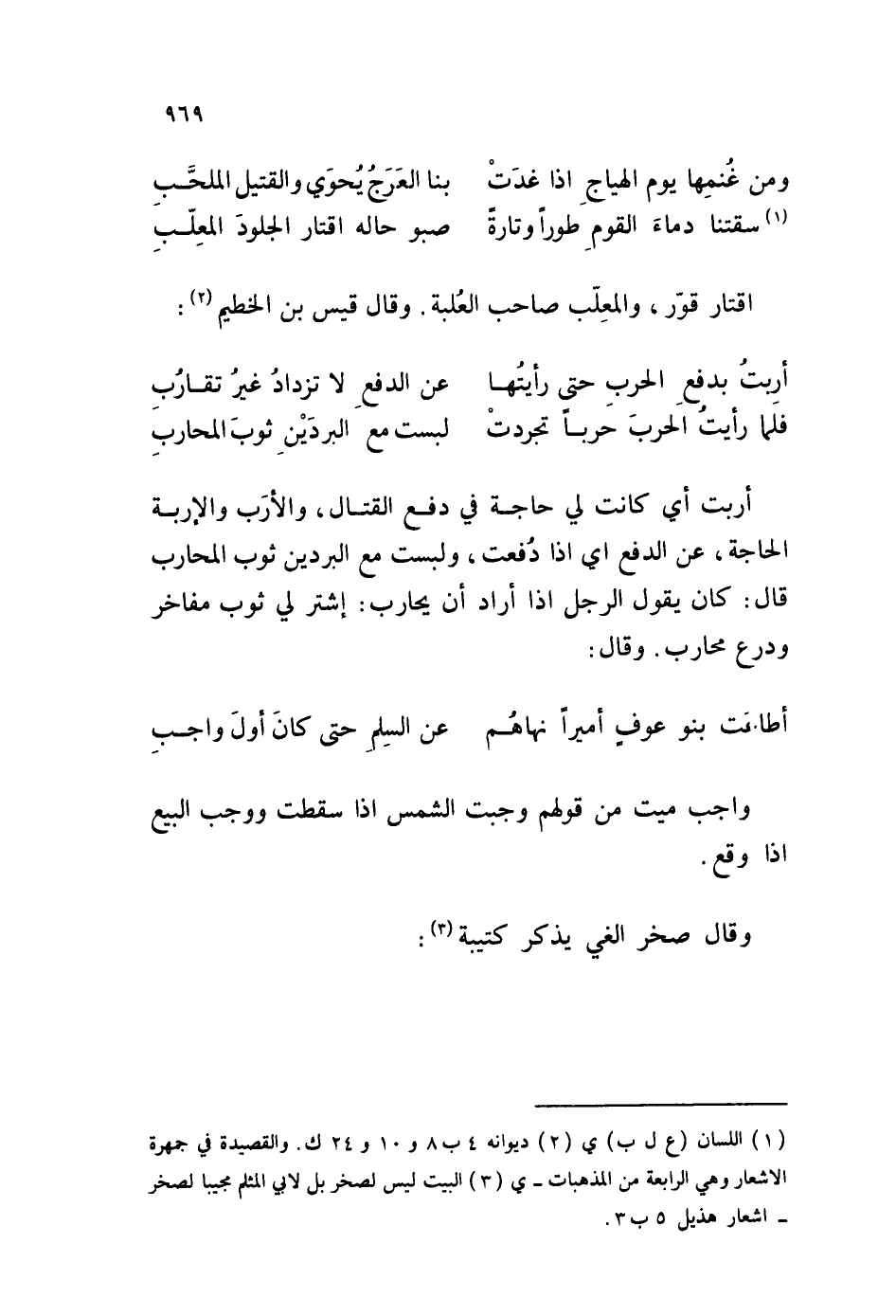 فلما رأيت الحربَ حرباً تجردتْ ... لبست مع البرديْنِ ثوبَ المحاربِ