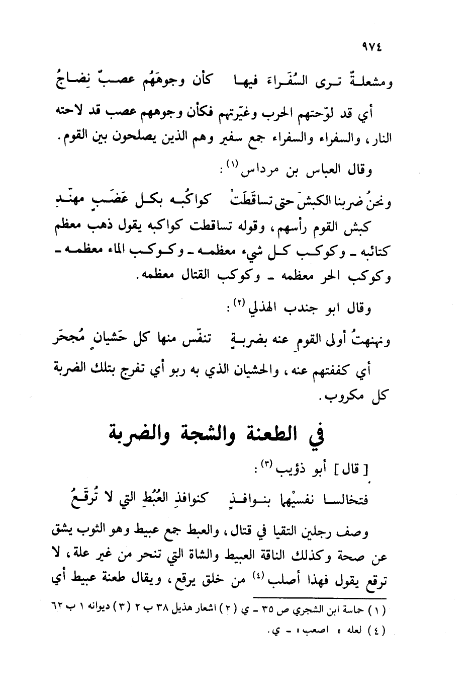 أي قد لوّحتهم الحرب وغيّرتهم فكأن وجوههم عصب قد لاحته النار، والسفراء والسفراء جمع سفير وهم الذين يصلحون بين القوم. وقال العباس بن مرداس: