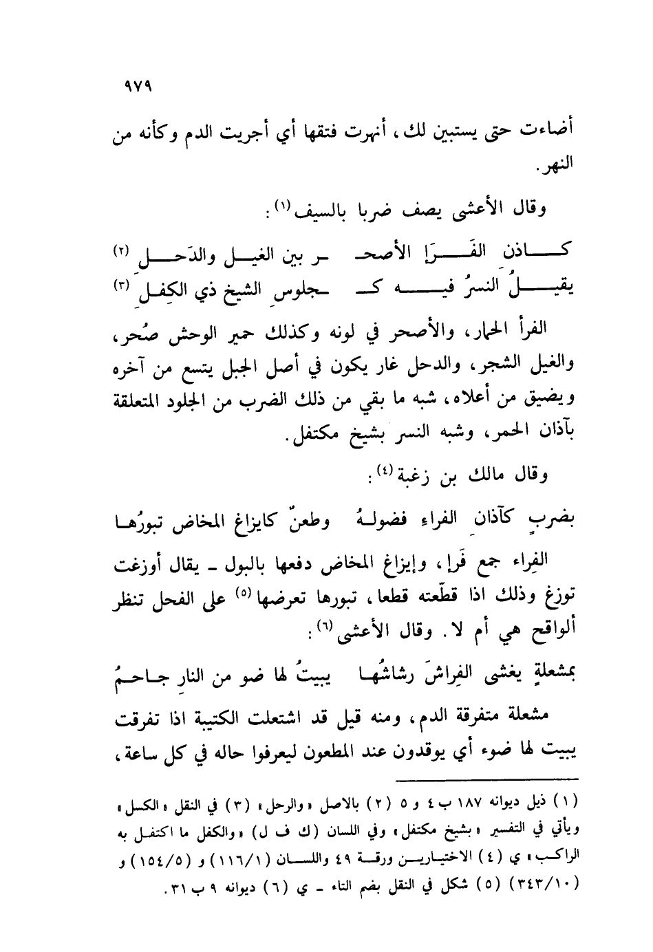 أضاءت حتى يستبين لك، أنهرت فتقها أي أجريت الدم وكأنه من النهر. وقال الأعشى يصف ضربا بالسيف:
