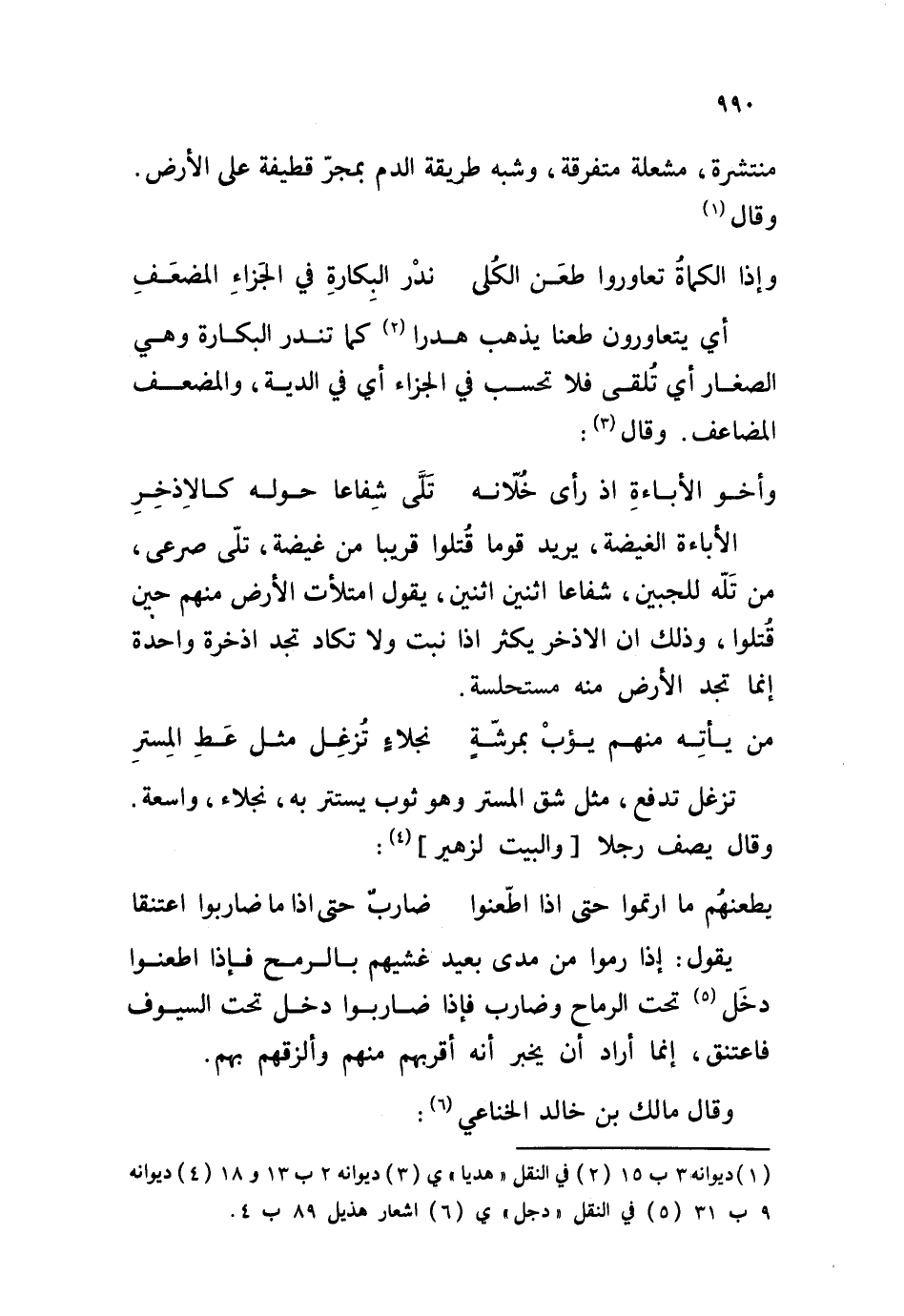أي يتعاورون طعنا يذهب هدرا كما تندر البكارة وهي الصغار أي تُلقى فلا تحسب في الجزاء أي في الدية، وَالمضف المضاعف. وقال:
