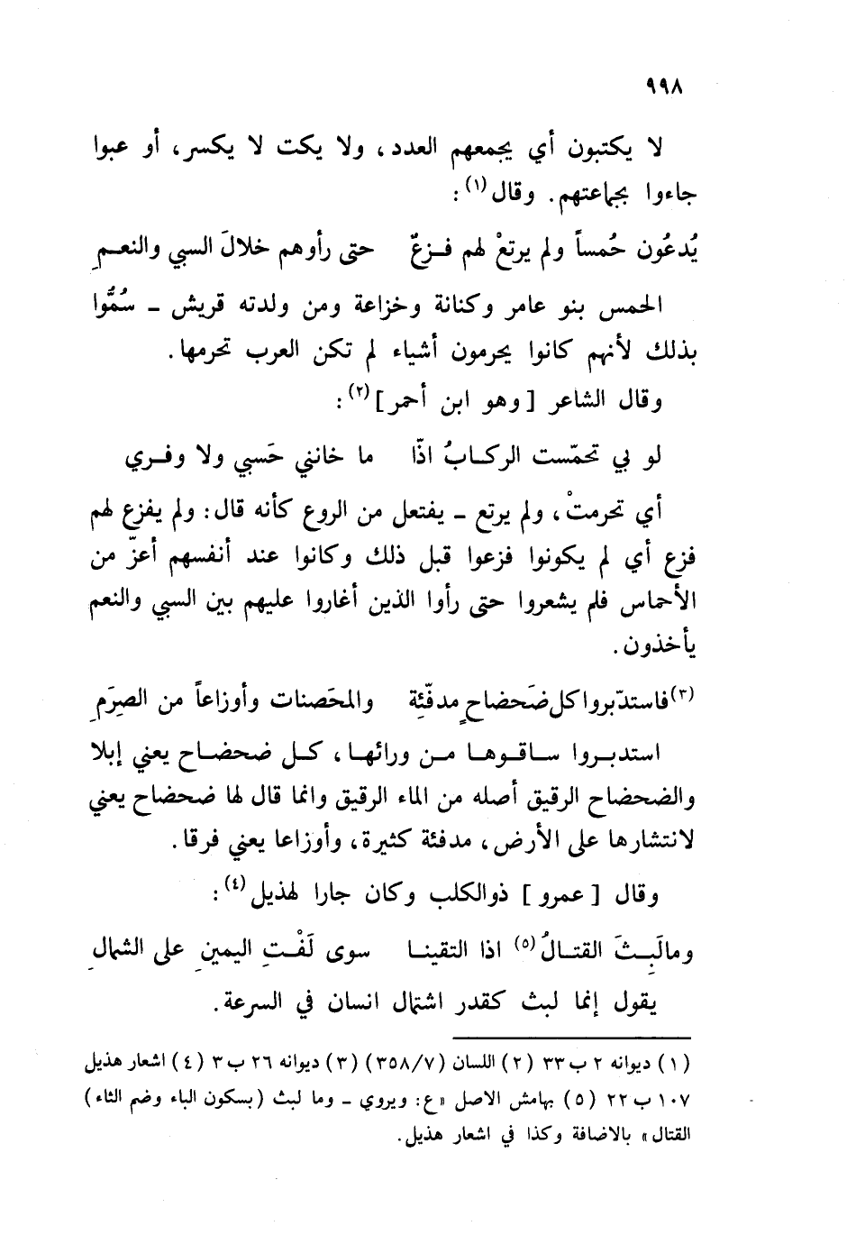 استدبروا ساقوها من ورائها، كل ضحضاح يعني إبلا والضحضاح الرقيق أصله من الماء الرقيق وإنما قال لها ضحضاح يعني لانتشارها على الأرض، مدفئة كثيرة، وأوزاعا يعني فرقا. وقال عمرو ذو الكلب وكان جارا لهذيل: