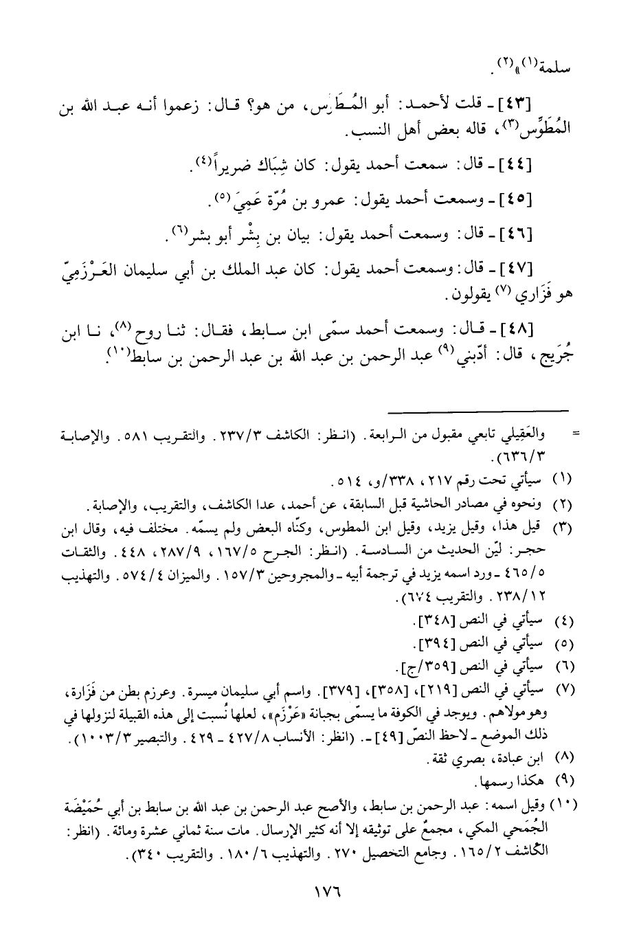 [43] قلت لِأَحْمَد أَبُو المطوس من هُوَ قَالَ زَعَمُوا أَنه عبد الله بن المطوس قَالَه بعض أهل النّسَب