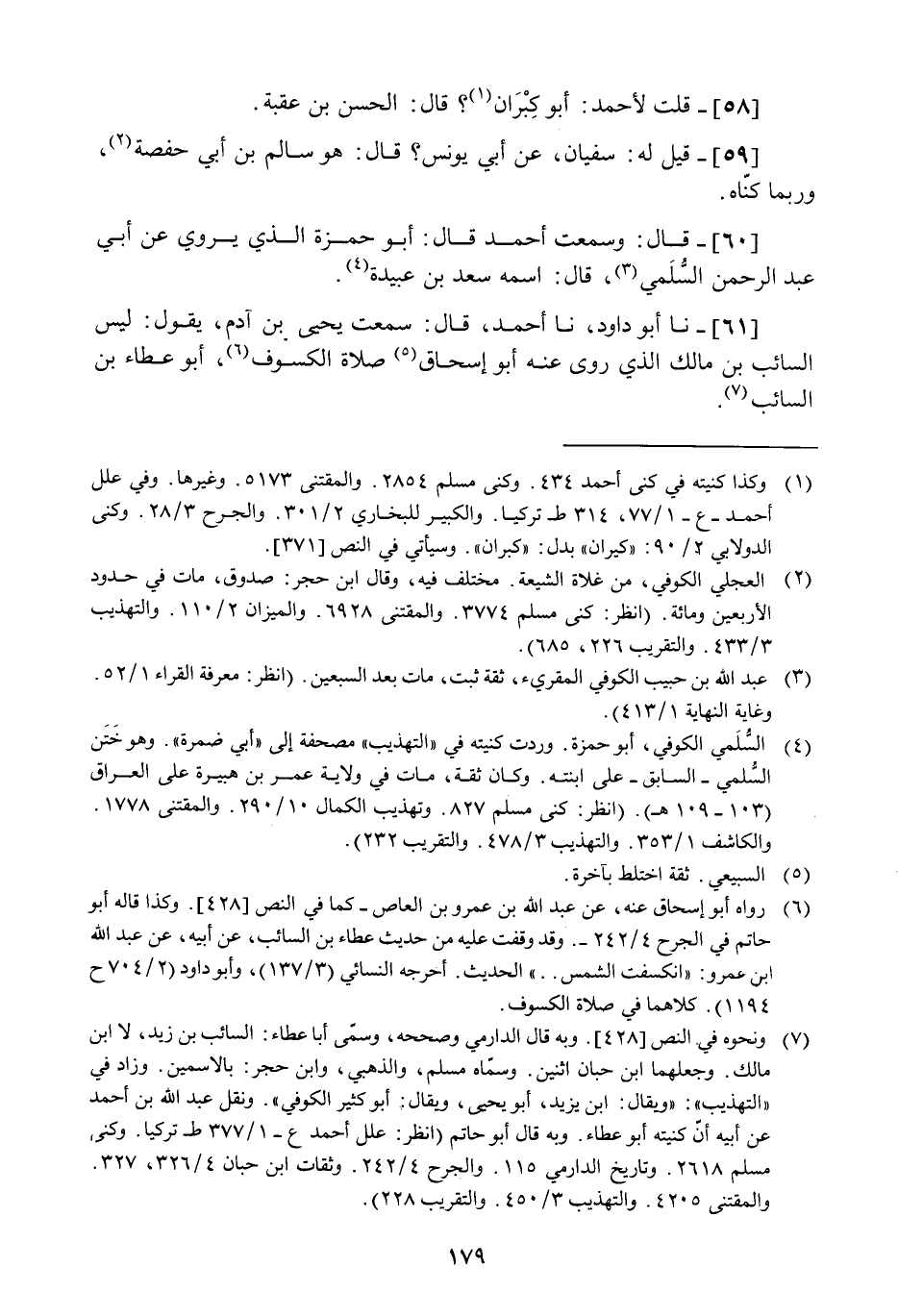 [59] قيل لَهُ سُفْيَان عَن أبي يُونُس قَالَ هُوَ سَالم بن أبي حَفْصَة وَرُبمَا كناه