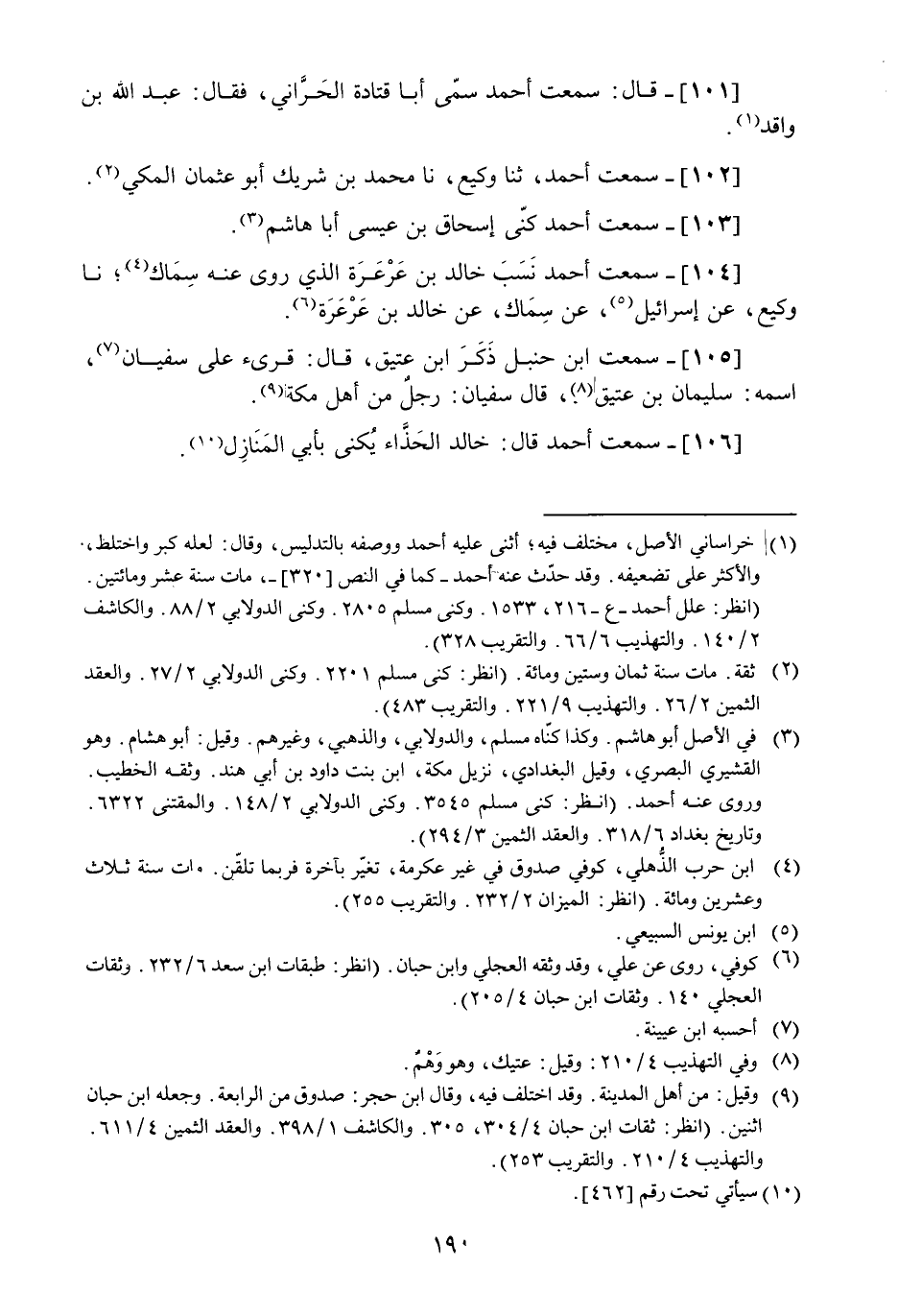 [106] سَمِعت أَحْمد قَالَ خَالِد الْحذاء يكنى بِأبي الْمنَازل
