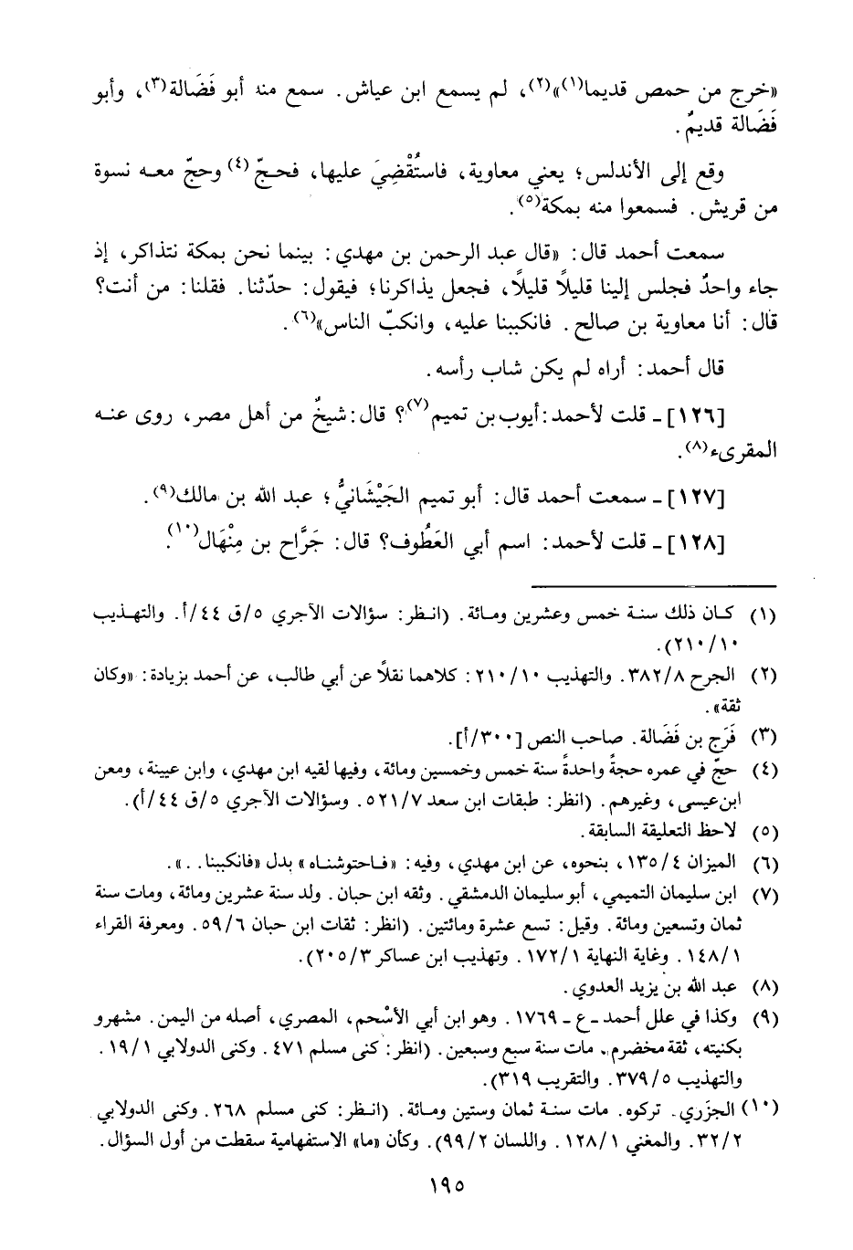 [127] سَمِعت أَحْمد قَالَ أَبُو تَمِيم الجيشاني عبد الله بن مَالك