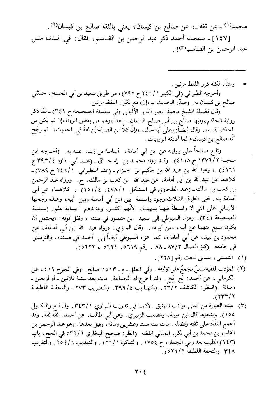 [147] سَمِعت أَحْمد ذكر عبد الرَّحْمَن بن الْقَاسِم فَقَالَ فِي الدُّنْيَا مثل عبد الرَّحْمَن بن الْقَاسِم