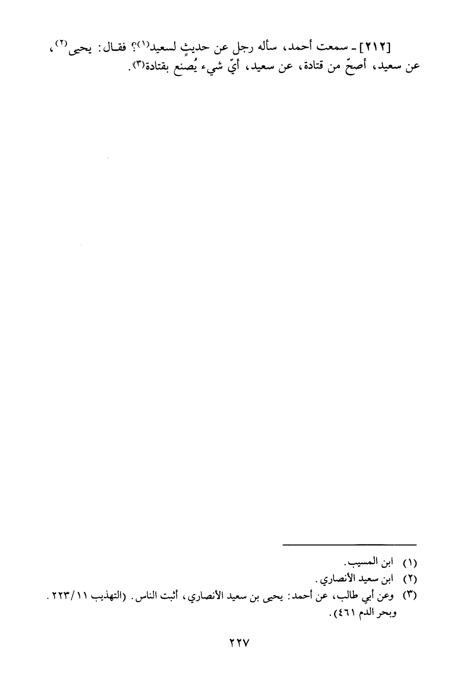 [212] سَمِعت أَحْمد سَأَلَهُ رجل عَن حَدِيث لسَعِيد فَقَالَ يحيى عَن سعيد أصح من قَتَادَة عَن سعيد أَي يصنع بقتادة