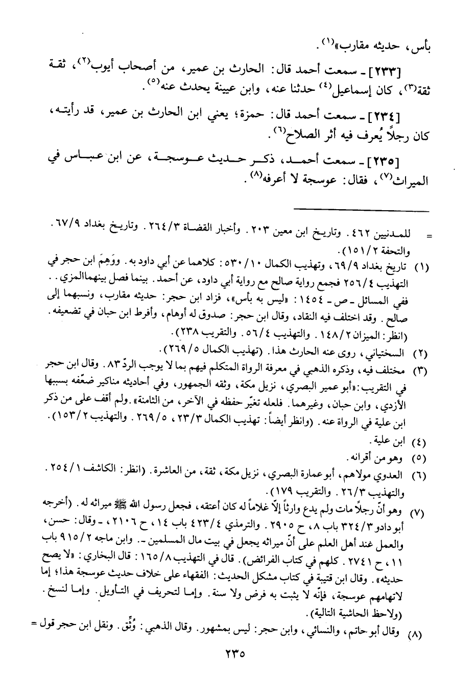 [235] سَمِعت أَحْمد ذكر حَدِيث عَوْسَجَة عَن ابْن عَبَّاس فِي الْمِيرَاث فَقَالَ عَوْسَجَة لَا أعرفهُ