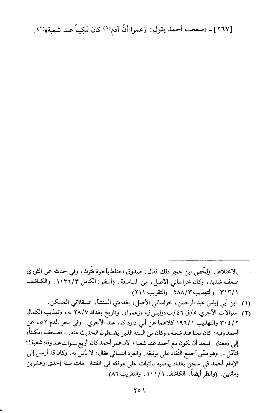 [267] سَمِعت أَحْمد يَقُول زَعَمُوا أَن آدم كَانَ مكينا عِنْد شُعْبَة