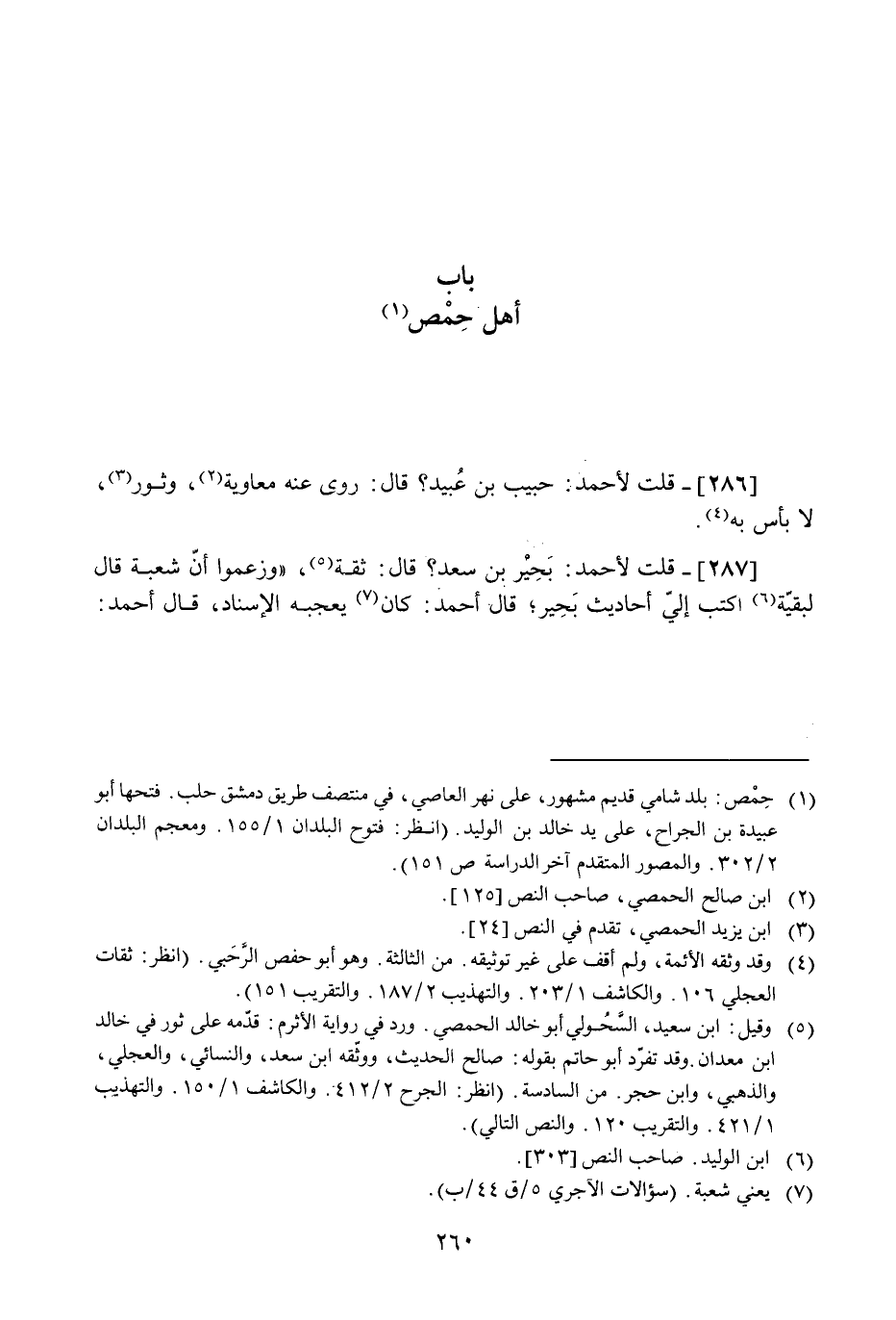 [287] قلت لِأَحْمَد بحير بن سعد قَالَ ثِقَة وَزَعَمُوا أَن شُعْبَة قَالَ لبَقيَّة اكْتُبْ إِلَيّ أَحَادِيث بحير قَالَ أَحْمد كَانَ يُعجبهُ الْإِسْنَاد قَالَ أَحْمد