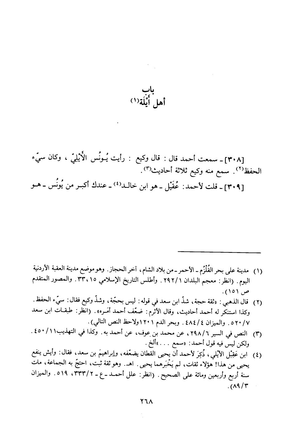[308] سَمِعت أَحْمد قَالَ قَالَ وَكِيع رَأَيْت يُونُس الْأَيْلِي وَكَانَ سيء الْحِفْظ سمع مِنْهُ وَكِيع ثَلَاثَة أَحَادِيث