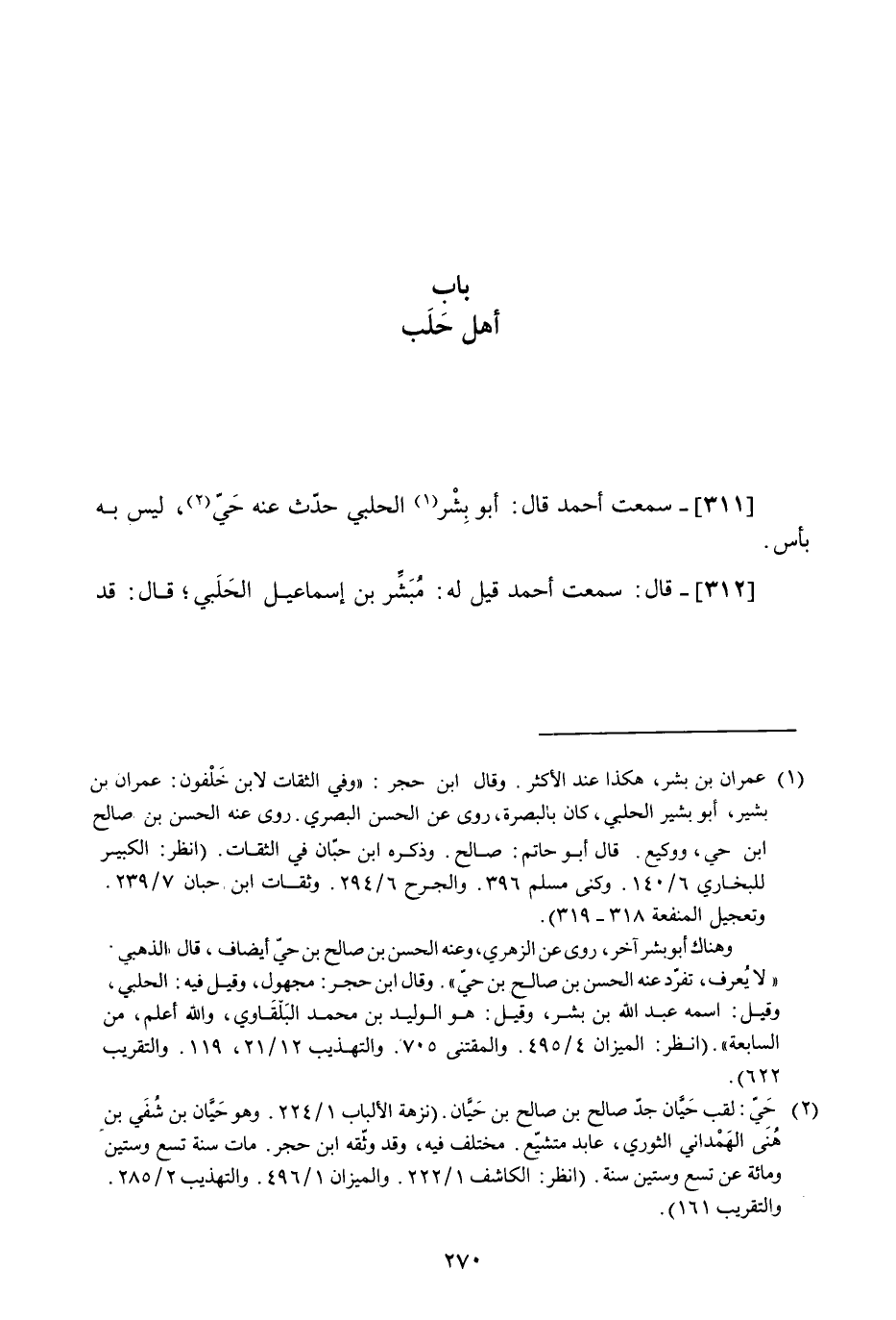 [311] سَمِعت أَحْمد قَالَ أَبُو بشر الْحلَبِي حدث عَنهُ حَيّ لَيْسَ بِهِ بَأْس