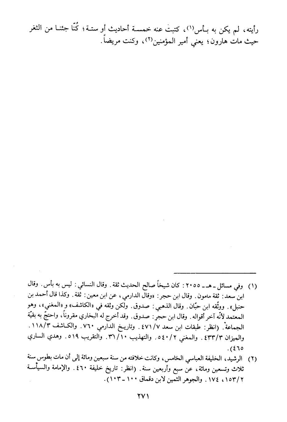رَأَيْته لم يكن بِهِ بَأْس كتبت عَنهُ خَمْسَة أَحَادِيث أَو سِتَّة كُنَّا جِئْنَا من الثغر حَيْثُ مَاتَ هَارُون يَعْنِي أَمِير الْمُؤمنِينَ وَكنت مَرِيضا