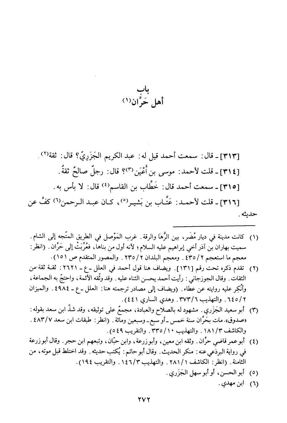[313] قَالَ سَمِعت أَحْمد قيل لَهُ عبد الْكَرِيم الْجَزرِي قَالَ ثِقَة