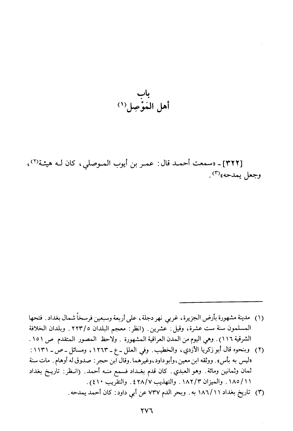 [322] سَمِعت أَحْمد قَالَ عمر بن أَيُّوب الْموصِلِي كَانَ لَهُ هَيْئَة وَجعل يمدحه