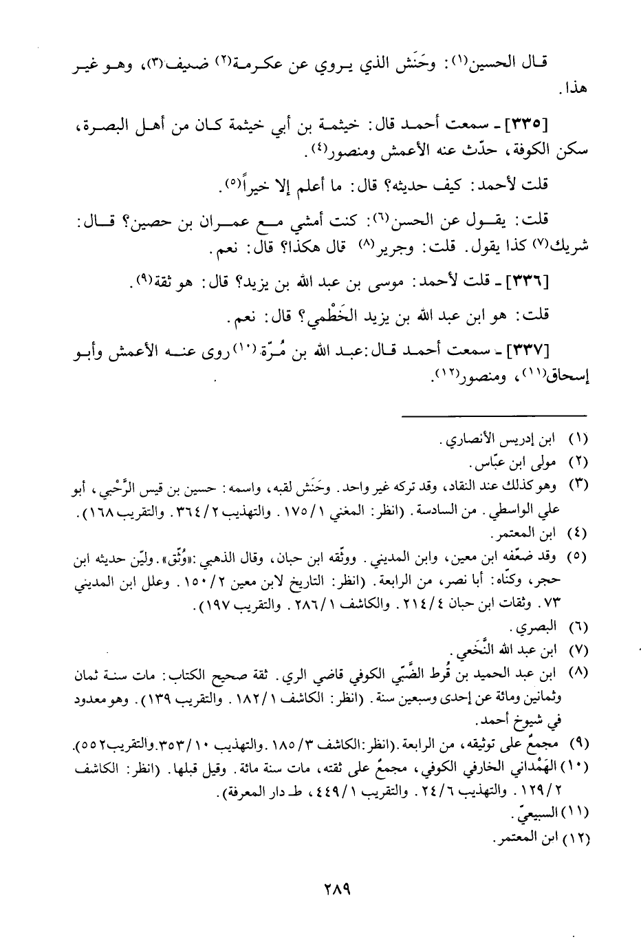 [335] سَمِعت أَحْمد قَالَ خَيْثَمَة بن أبي خَيْثَمَة كَانَ من أهل الْبَصْرَة سكن الْكُوفَة حدث عَنهُ الْأَعْمَش وَمَنْصُور