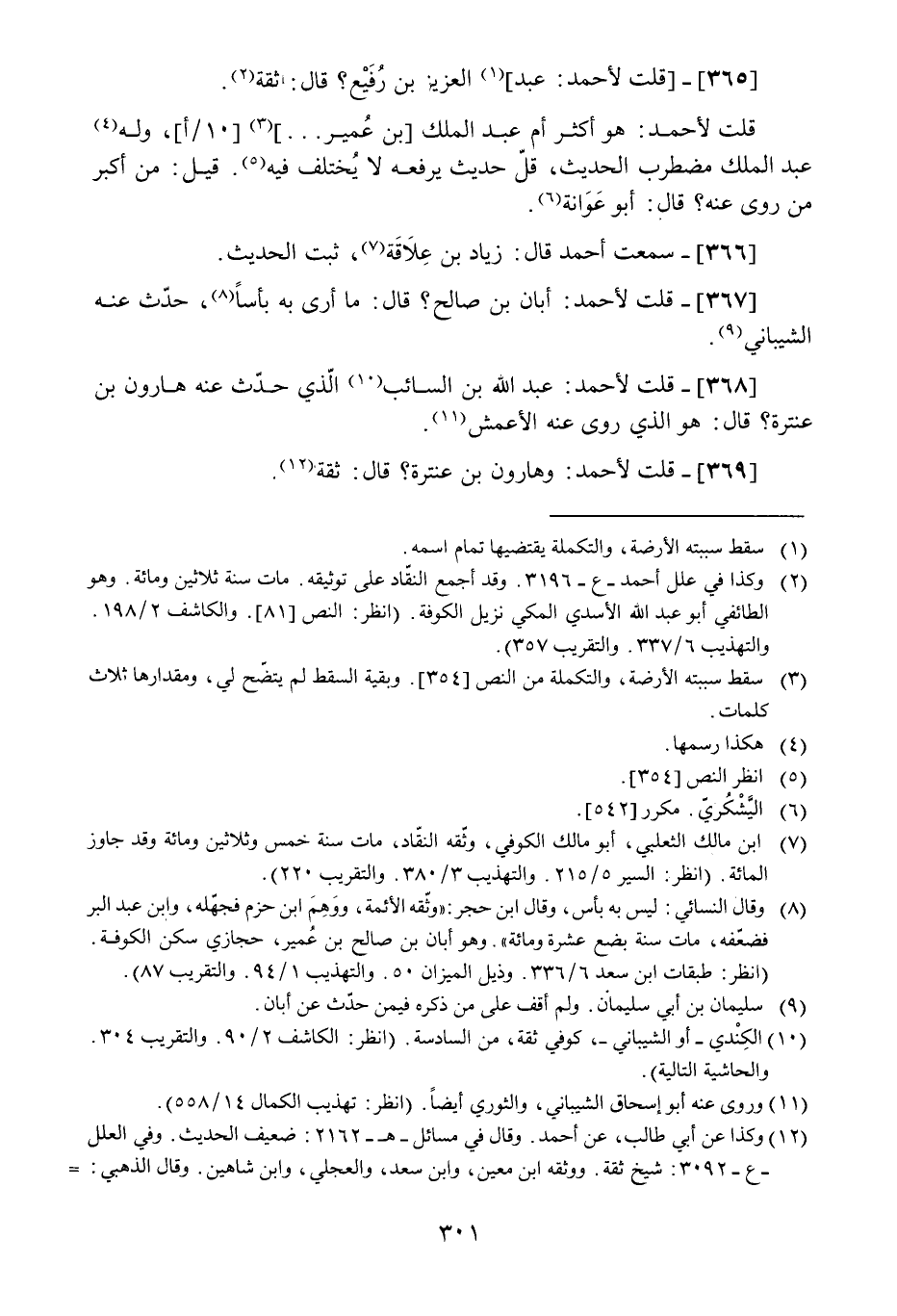 [365] [قلت لِأَحْمَد عبد] الْعَزِيز بن رفيع قَالَ ثِقَة
