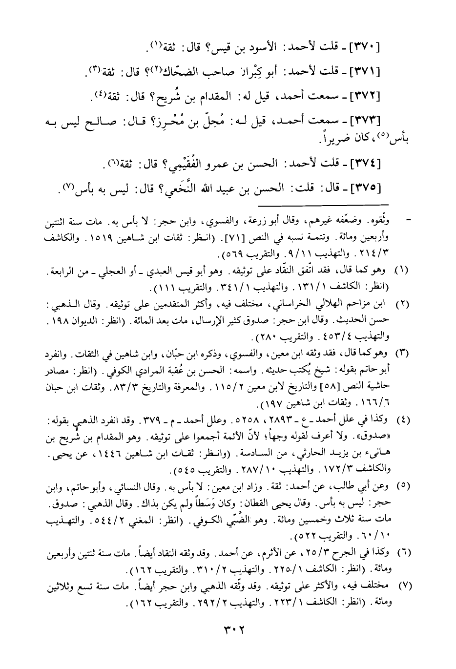 [370] قلت لِأَحْمَد الْأسود بن قيس قَالَ ثِقَة