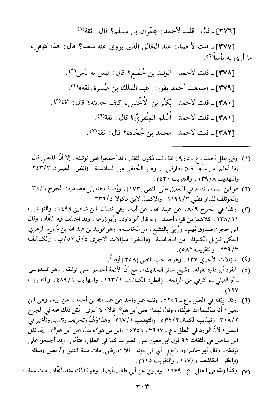 [376] قَالَ قلت لِأَحْمَد عمرَان بن مُسلم قَالَ ثِقَة