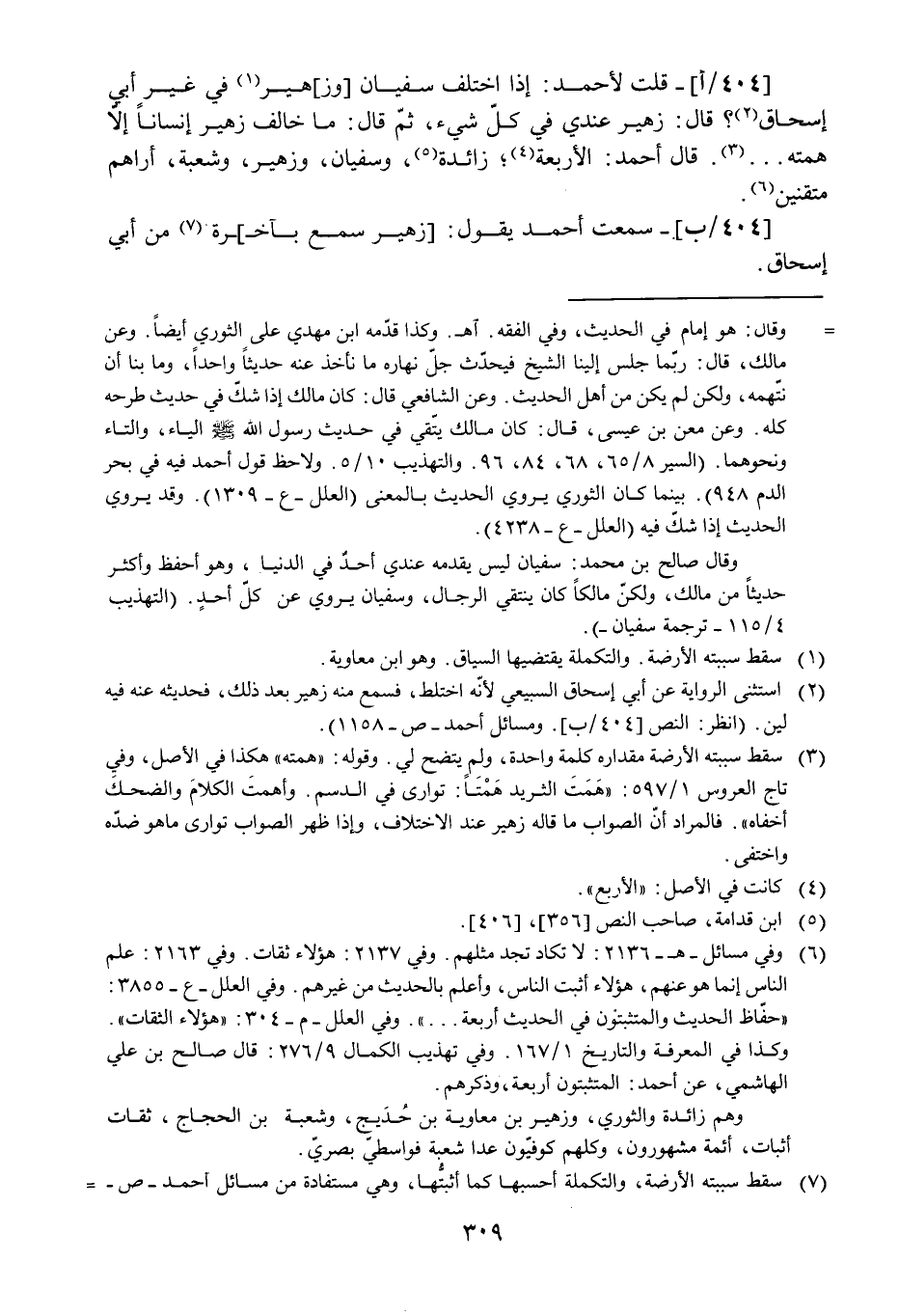 [404 ب] سَمِعت أَحْمد يَقُول [زُهَيْر سمع بآخ] رة من أبي إِسْحَاق
