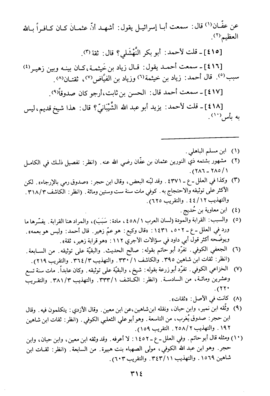 [415] قلت لِأَحْمَد أَبُو بكر النَّهْشَلِي قَالَ ثِقَة