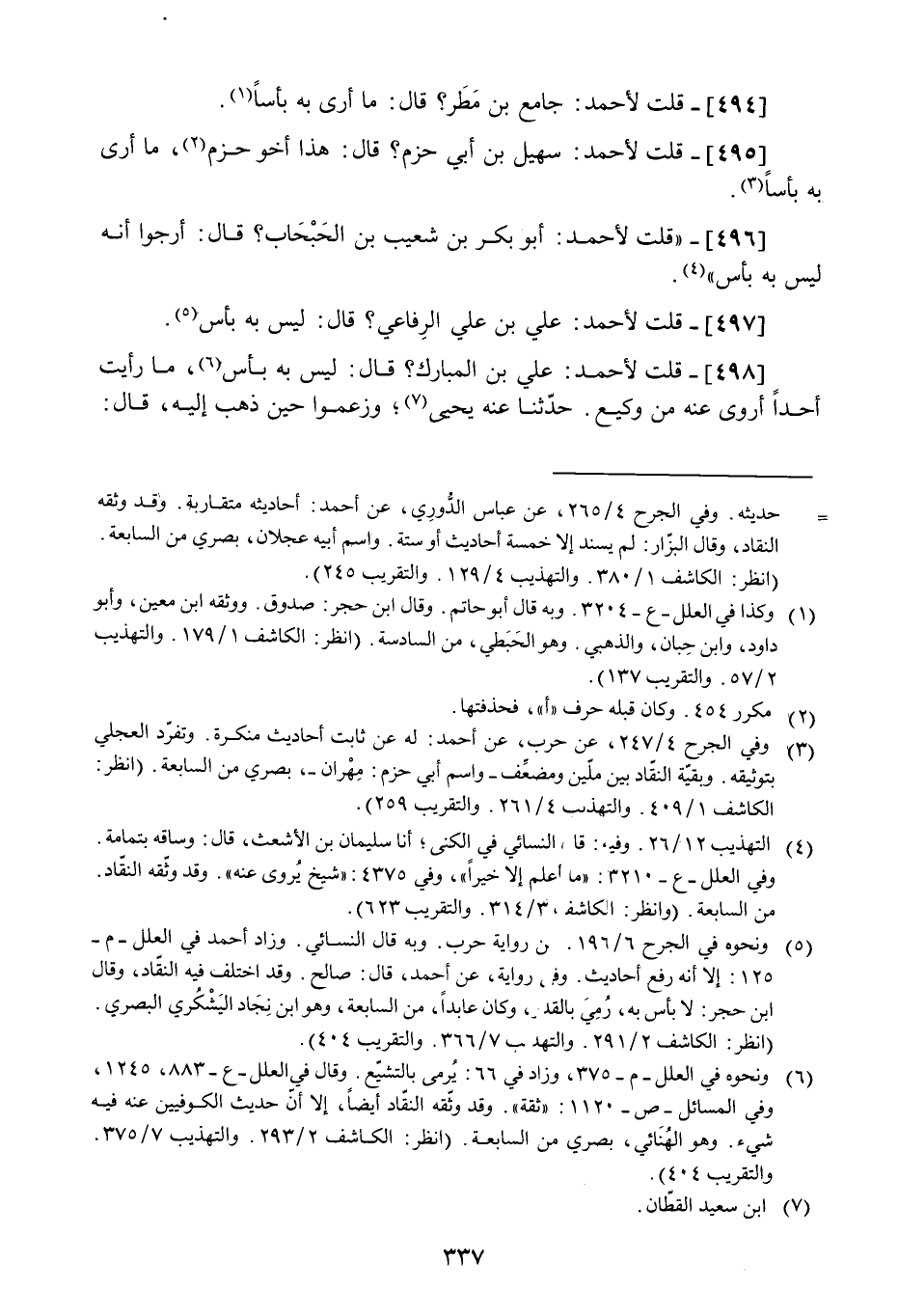 [497] قلت لِأَحْمَد عَليّ بن عَليّ الرِّفَاعِي قَالَ لَيْسَ بِهِ بَأْس