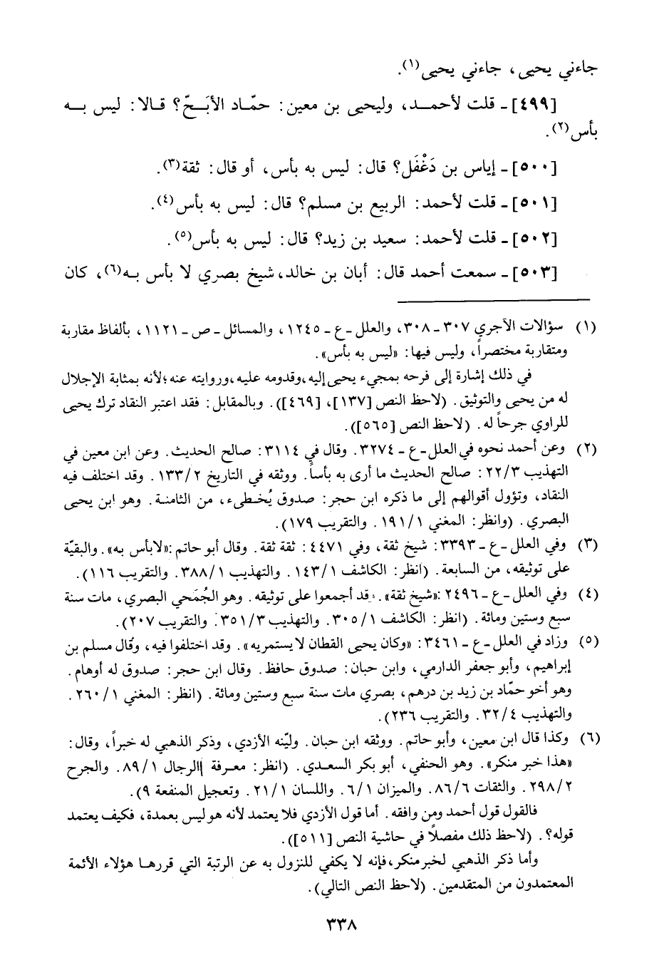 [499] قلت لِأَحْمَد وليحيى بن معِين حَمَّاد الْأَبَح قَالَا لَيْسَ بِهِ بَأْس