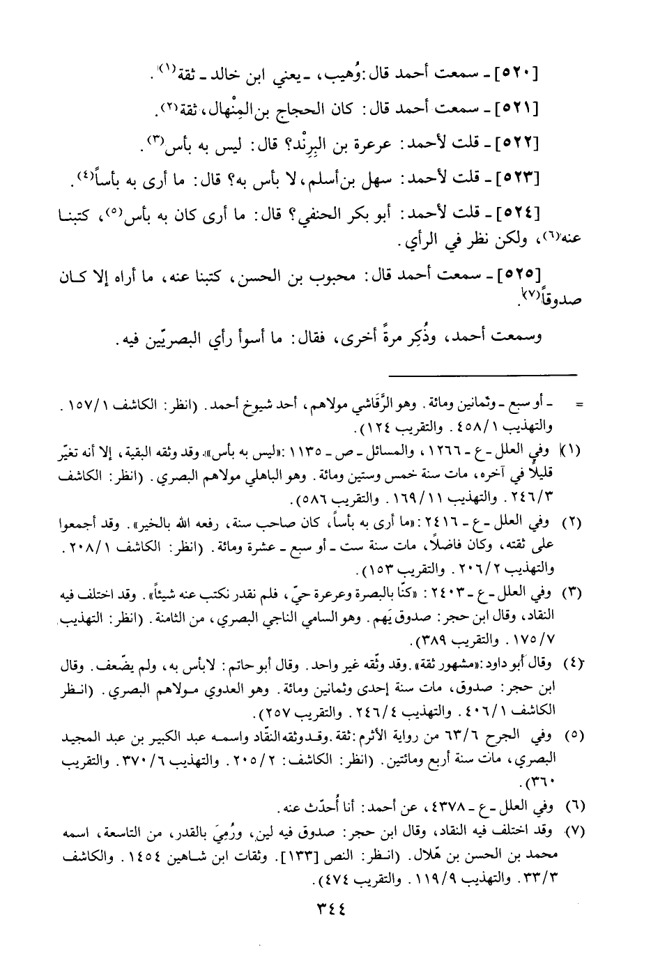 [520] سَمِعت أَحْمد قَالَ وهيب يَعْنِي ابْن خَالِد ثِقَة