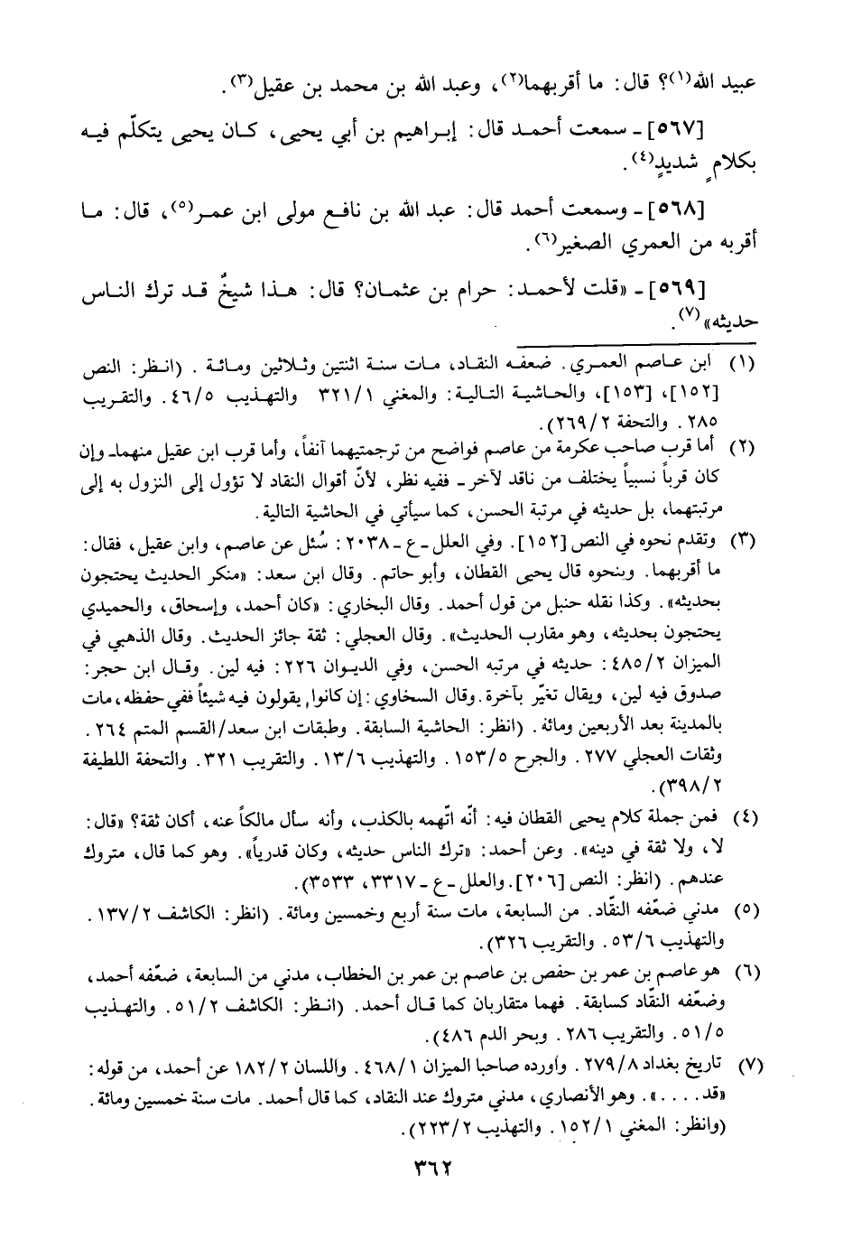[568] وَسمعت أَحْمد قَالَ عبد الله بن نَافِع مولى ابْن عمر قَالَ مَا أقربه من الْعمريّ الصَّغِير