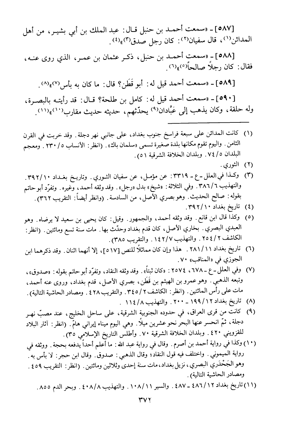 [590] سَمِعت أَحْمد قيل لَهُ كَامِل بن طَلْحَة قَالَ قد رَأَيْته بِالْبَصْرَةِ وَله حَلقَة وَكَانَ يذهب إِلَى عبادان يُحَدِّثهُمْ حَدِيثه حَدِيث مقارب