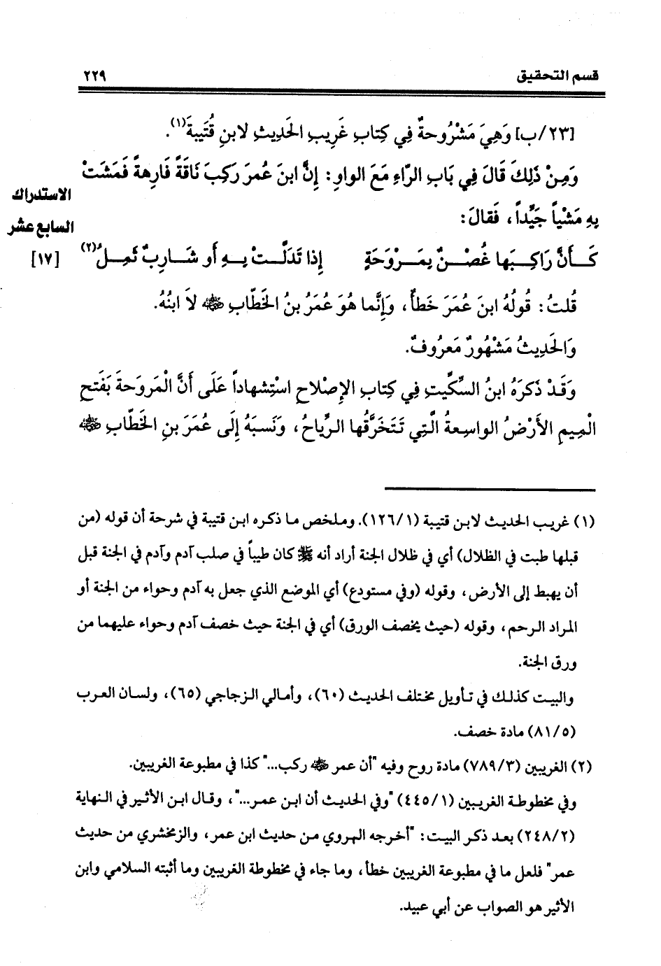 والحديثُ مشهورٌ معروفٌ. وقد ذكرَهُ ابنُ السكّيت استشهاداً على المَرْوحة بفتحِ الميمِ: الأرض الواسعة التي تتخرَّقها الرياحُ، ونسبه إلى عمرَ بنِ الخطَّابِ، رضيَ الله عنهُ.
