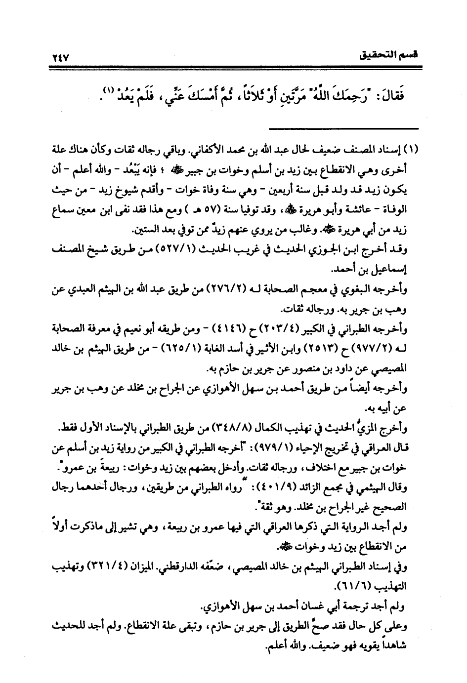 فقالَ رَحِمَكَ الله مرَّتين أو ثلاثاً، ثمّ أَمْسَك عنِّي فلم يَعُد.