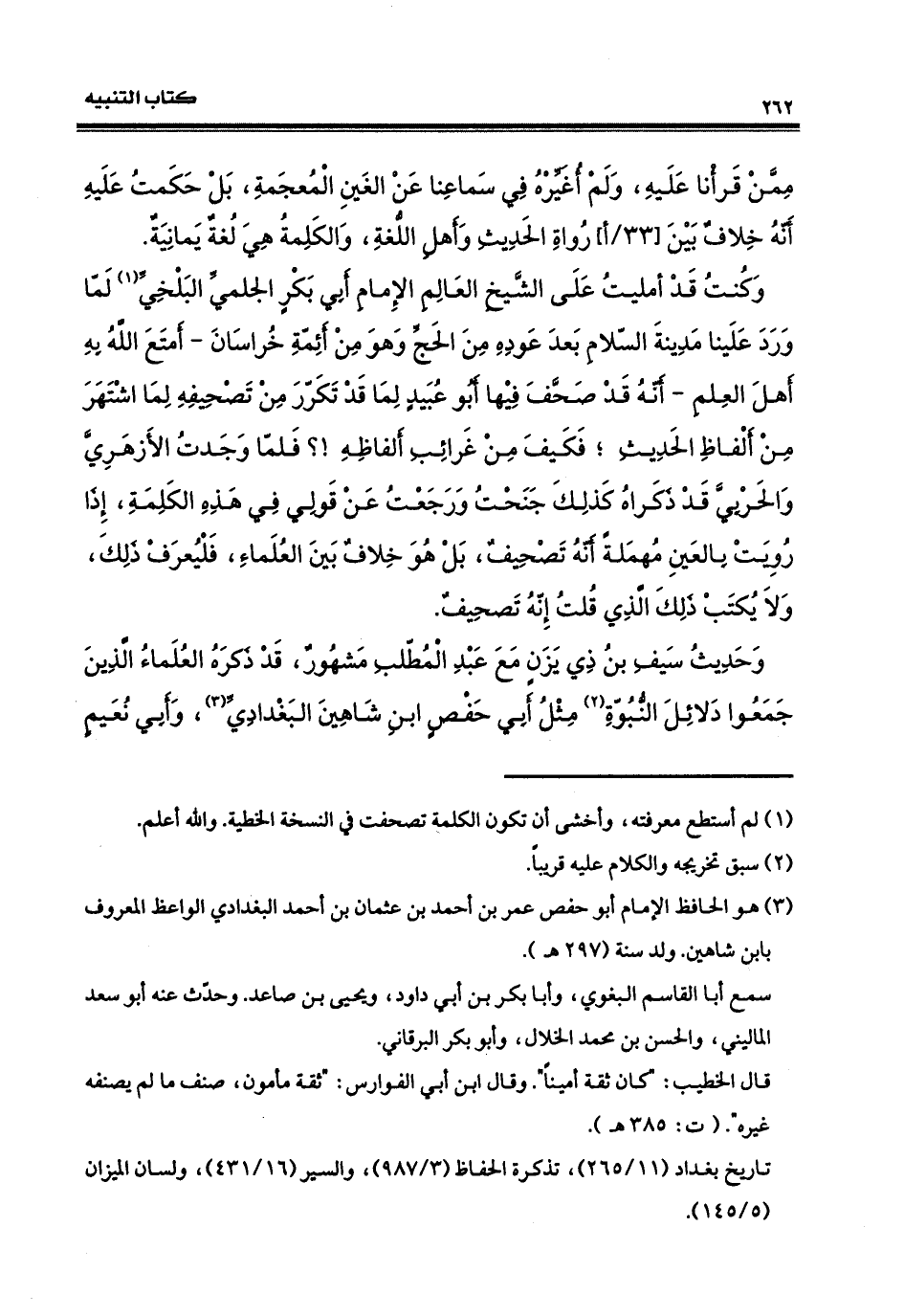 ممَّن قَرَأْنا عليه، ولم أغيِّره في سماعِنا عن الغَين المعجمة بل حكمتُ على أنّه خلافٌ بينَ رواةِ الحديثِ وأهلِ اللغة. والكلمةُ هي لغةٌ يمانيةٌ. وكنتُ قد أمليتُ على الشيخِ العالِم الإمام أبي بكر الجلميّ البلخيّ، لمّا ورد علينا مدينةَ السلامِ بعدَ عَوْدِهِ منَ الحجّ، وهو منْ أئمَّةِ خراسان - أمتعَ الله بهِ أهلَ العلمِ - أنّه قد صحّف فيها أبو عبيدٍ لما تكرّر من تصحيفِه لما اشتُهِرَ منْ ألفاظِ الحديثِ، فكيف منْ غرائبِ ألفاظِه؟ فلمّا وجدتُ الأزهريّ والحربيّ قد ذكراهُ كذلك