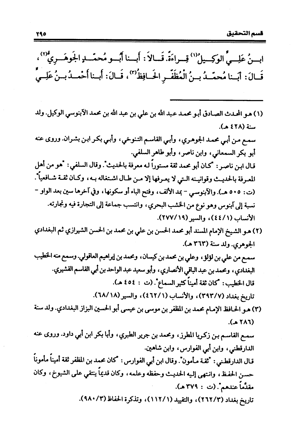 بن علي الوكيل قراءة، قالا: أنبأ أبو محمد الجوهريّ، قال: ثنا محمّد بن المظفّر الحافظ، قال: أنبأ أحمد بن عليّ