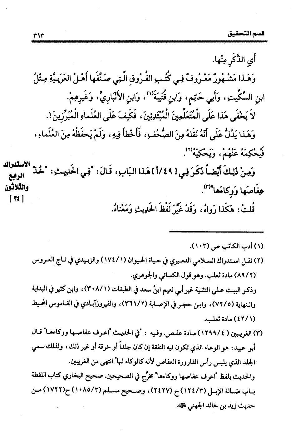 أي: الذكر منها، وهذا مشهور معروف في كتب الفروقِ التي صنّفها أهلُ العربية، مثل ابنِ السّكِّيت، وأبي حاتم، وابن قتيبة، وابن الأنباريِّ، وغيرهم، لا يخفى هذا على المتعلِّمين المبتدئين، فكيف على العلماء المبرزين؟!. وهذا يدل على أنَّه نقله من الصحف فأخطأ فيهِ ولم يحفظه من العلماء فيحكمه عنهم ويحكيه.