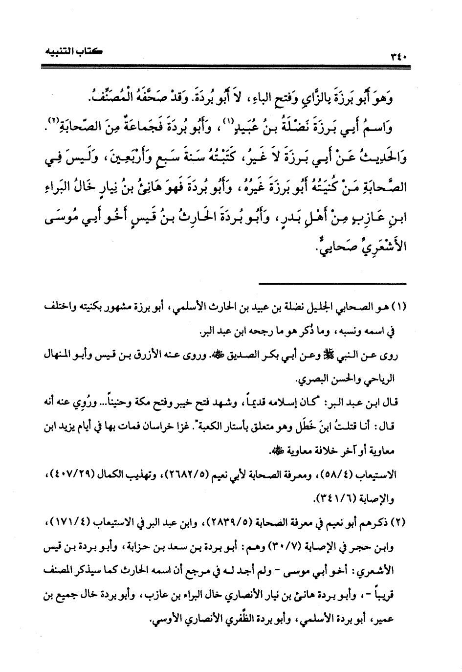وهو أبو بَرْزة، بالزاي وفتح الباء، لا أبو بُردة. وقد صحَّفَه المصنّفُ. واسمُ أبي برزة: نَضْلَة بنُ عبيدٍ، وأبو بُرْدة فجماعةٌ من الصحابةِ. والحديث عن أبي برزة لا غيرُ، كتبتُه في سنةِ سبعٍ وأربعينَ، وليسَ في الصحابة مِنْ كنيَته أبو بَرزةَ غيرُه. وأما أبو بُرْدة فهو هانئ بن نِيارٍ، خال البَراء بنِ عازبٍ من أهل بدر وأبو بُرْدة الحارث بنُ قيس الأشعريّ، أخو أبي موسى الأشعري، صحابيٌّ.