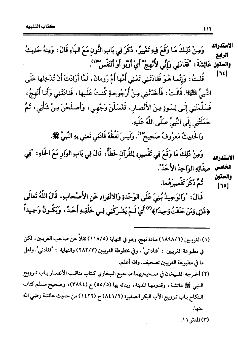 ومن ذلك ما وقع فيه تغيير، ذكر في باب (النون مع الهاء)، قال: ومنه حديث عائشة: فقادني وإني لأنهج، أي أربو أو أتنفّس.