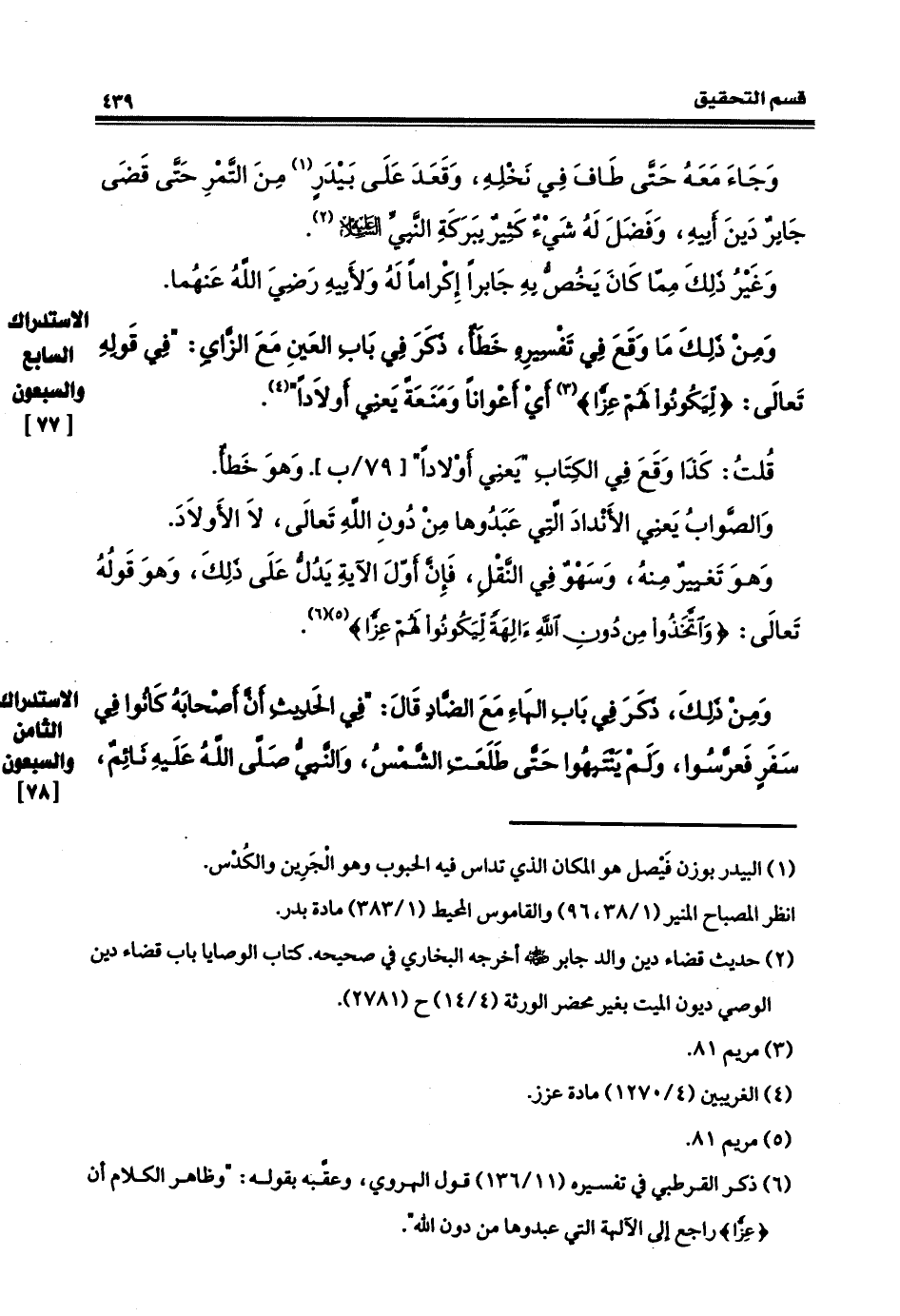 ومْنْ ذلك ما وقعَ في تفسيرهِ خطأ، ذكر في باب (العين مع الزاي)، في قوله تعالى: (ليكُونُوا لَهُم عزّاً) أي أعواناً ومنعة، يعني أولاداً.