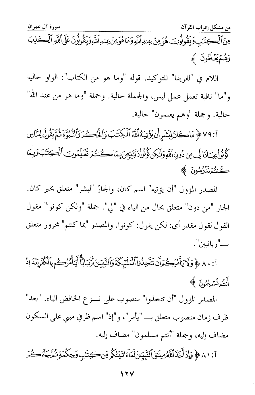المصدر المؤول «أن تتخذوا» منصوب على نزع الخافض الباء. «بعد» ظرف زمان منصوب متعلق بـ «يأمر» ، و «إذ» اسم ظرفي مبني على السكون مضاف إليه، وجملة «أنتم مسلمون» مضاف إليه.