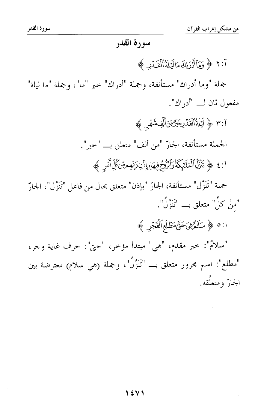 جملة «تَنزل» مستأنفة، الجار «بإذن» متعلق بحال من فاعل «تَنزل» ، الجار «من كل» متعلق بـ «تَنزل» .