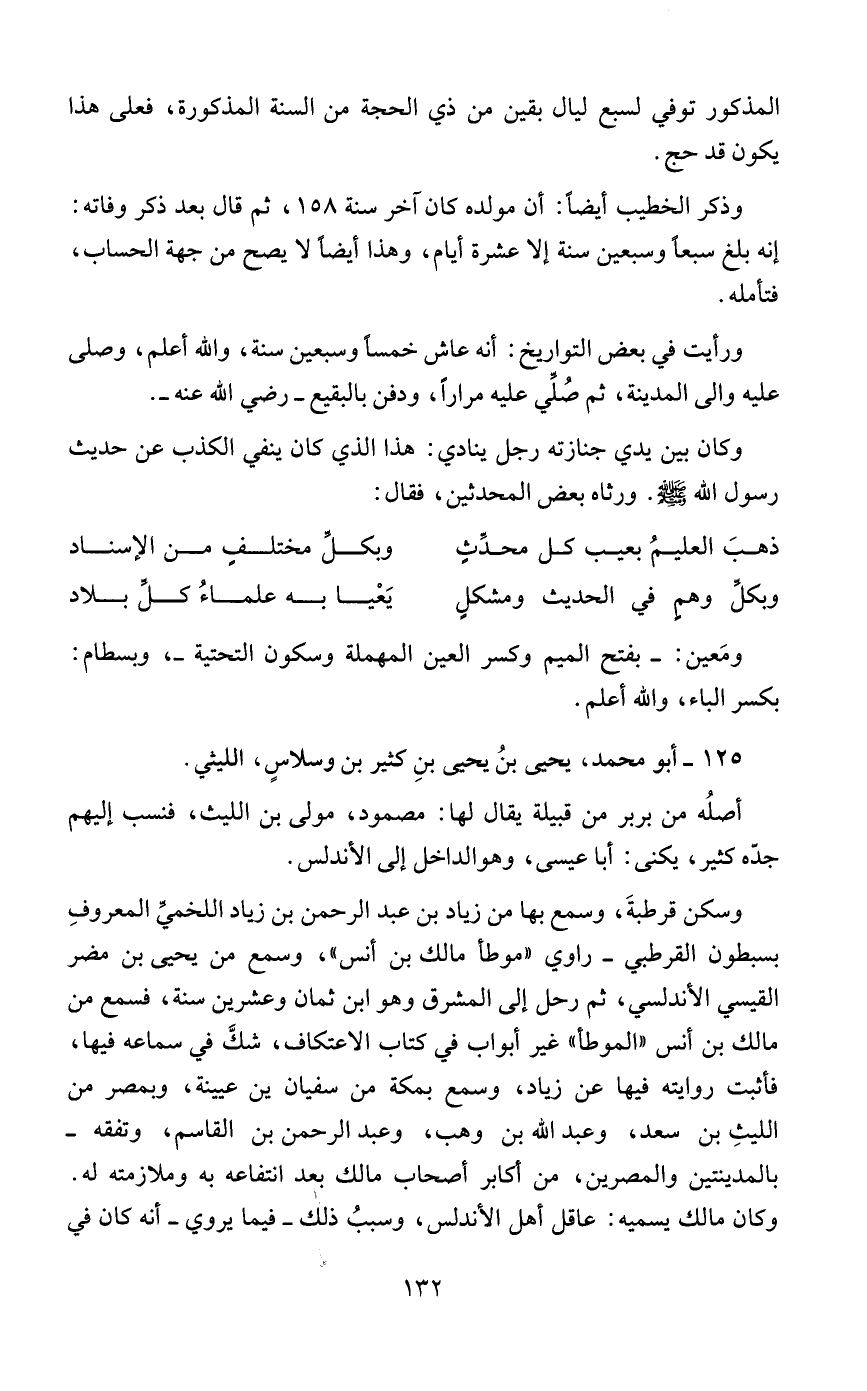 125 - أبو محمد، يحيى بنُ يحيى بنِ كثير بن وسلاسٍ، الليثي.