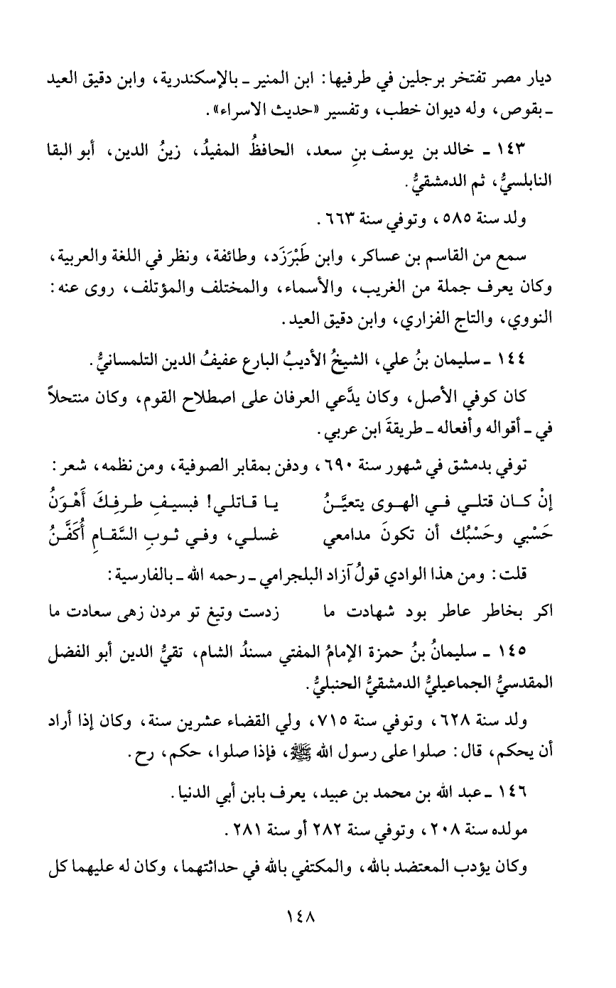 143 - خالد بن يوسف بنِ سعد، الحافظُ المفيدُ، زينُ الدين، أبو البقا النابلسيُّ، ثم الدمشقيُّ.