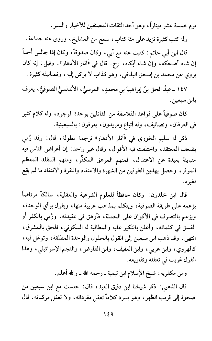 147 - عبدُ الحق بنُ إبراهيمَ بنِ محمدٍ، المرسيُّ، الأندلسيُّ الصوفيُّ، يعرف بابن سبعين.