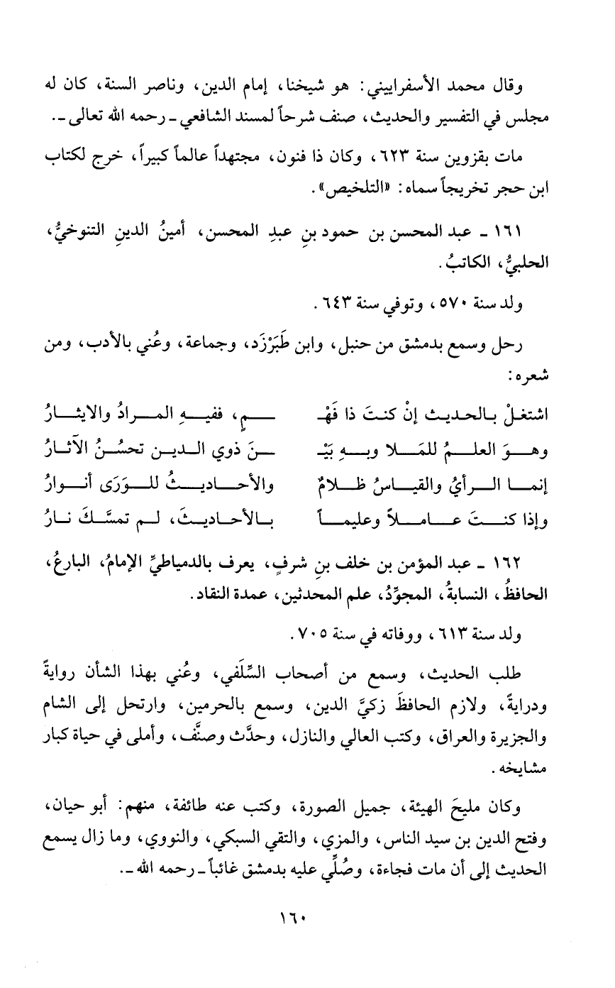 162 - عبد المؤمن بن خلف بنِ شرفٍ، يعرف بالدمياطيِّ الإمامُ، البارعُ، الحافظُ، النسابةُ، المجوِّدُ، علم المحدثين، عمدة النقاد.