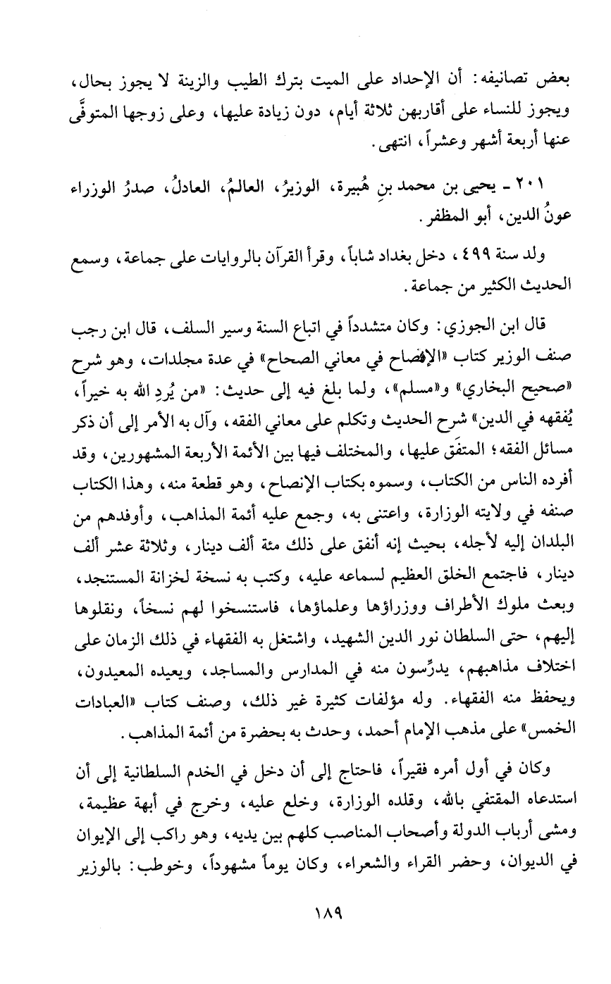 201 - يحيى بن محمد بنِ هُبيرة، الوزيرُ، العالمُ، العادلُ، صدرُ الوزراء عونُ الدين، أبو المظفر.